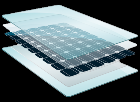 Glas-glas panelen hebben in plaats van een kunststof achterlaag, een glaslaag. Hierdoor zitten de cellen van de panelen tussen 2 glaslagen ‘ingeplakt’. Dit zorgt voor een hogere kwaliteit, een langere levensduur en een lagere rendementsafname.
